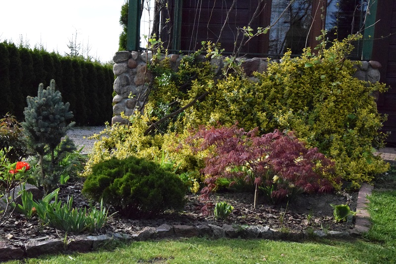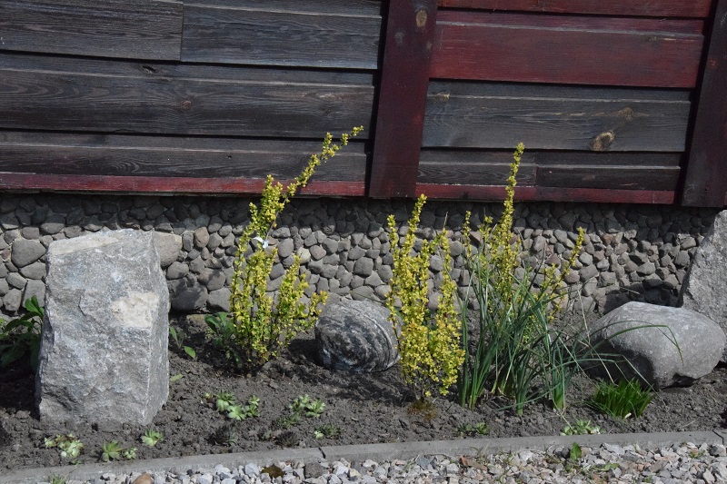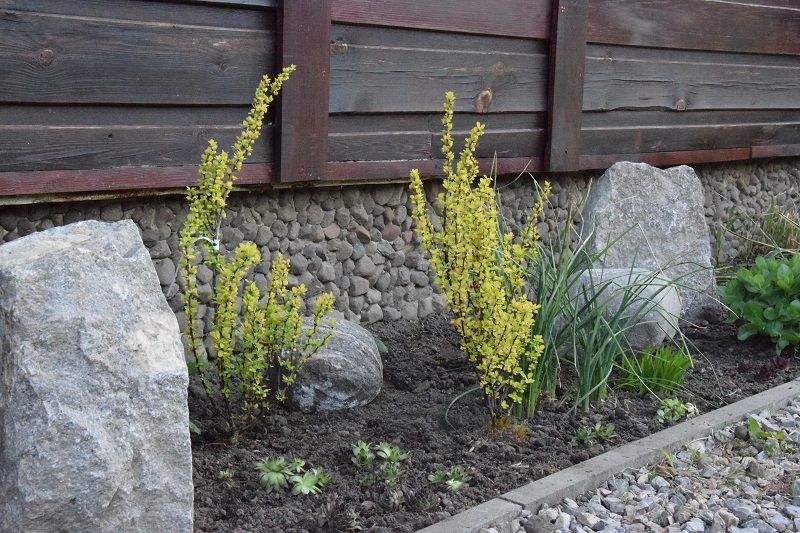 Berberysy, które kupiłam dla koleżanki, ale utknęły w moim ogrodzie :diabelek . Prawda, że to dla nich idealne miejsce?