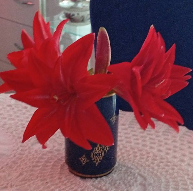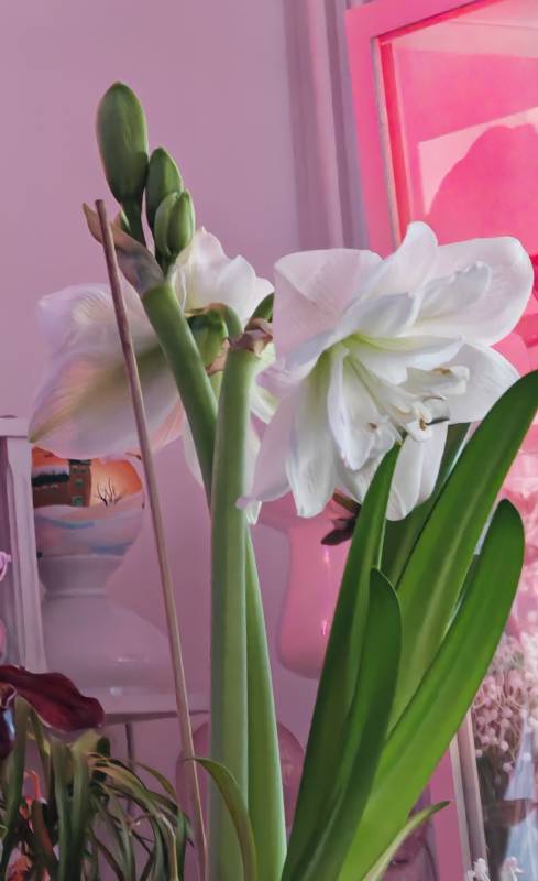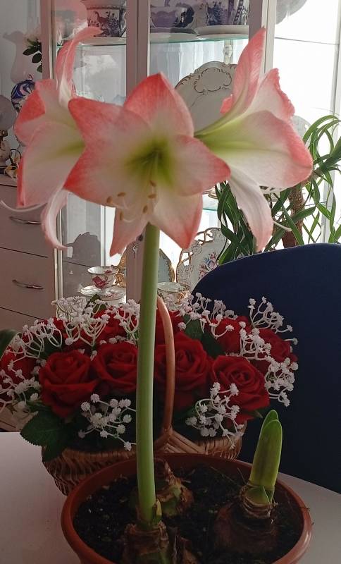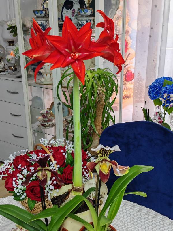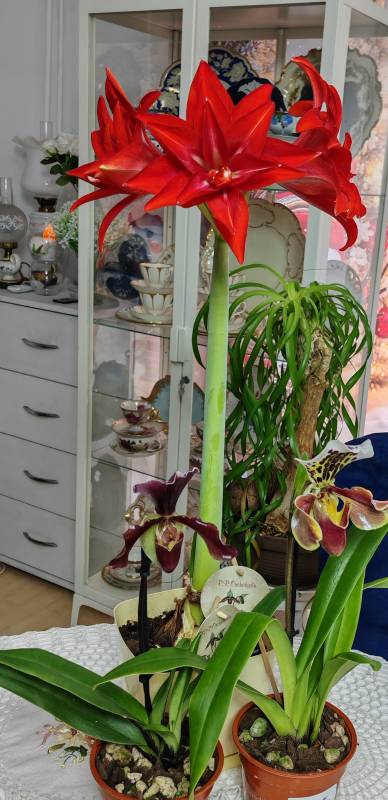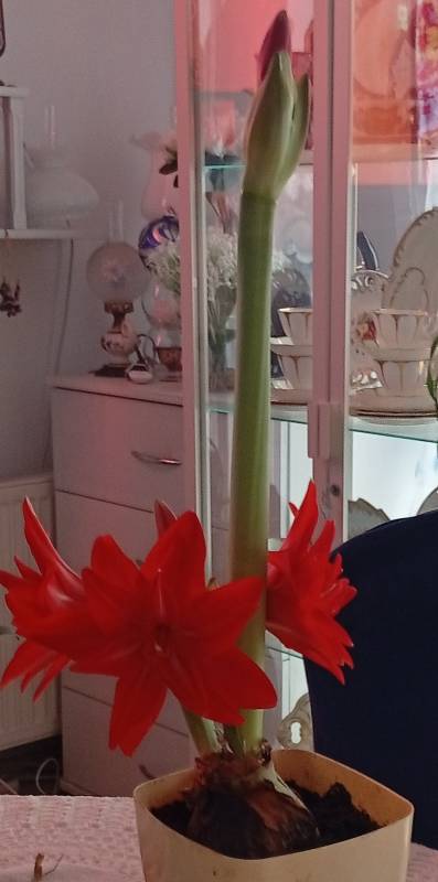 lilie przekwitły, zaczęły amarylisy ,jako pierwszy dziś zakwitł, zamiast pelnego cieni różowego
