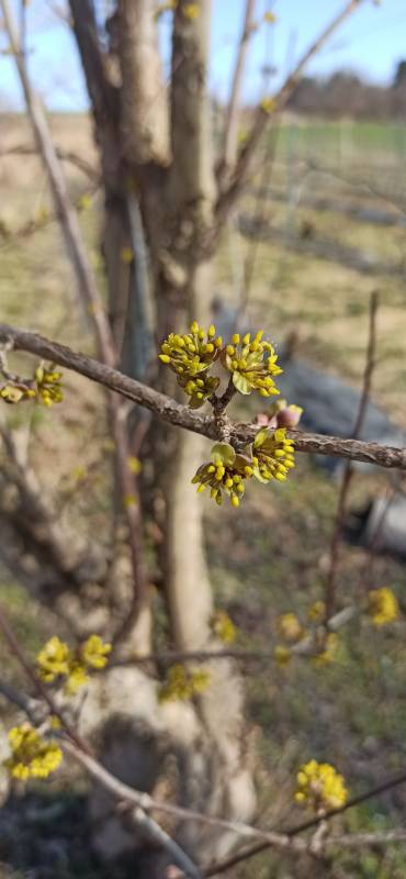 Dereń jadalny coraz śmielszy, w ciągu 2-3 dni powinien już cały rozkwitnąć: