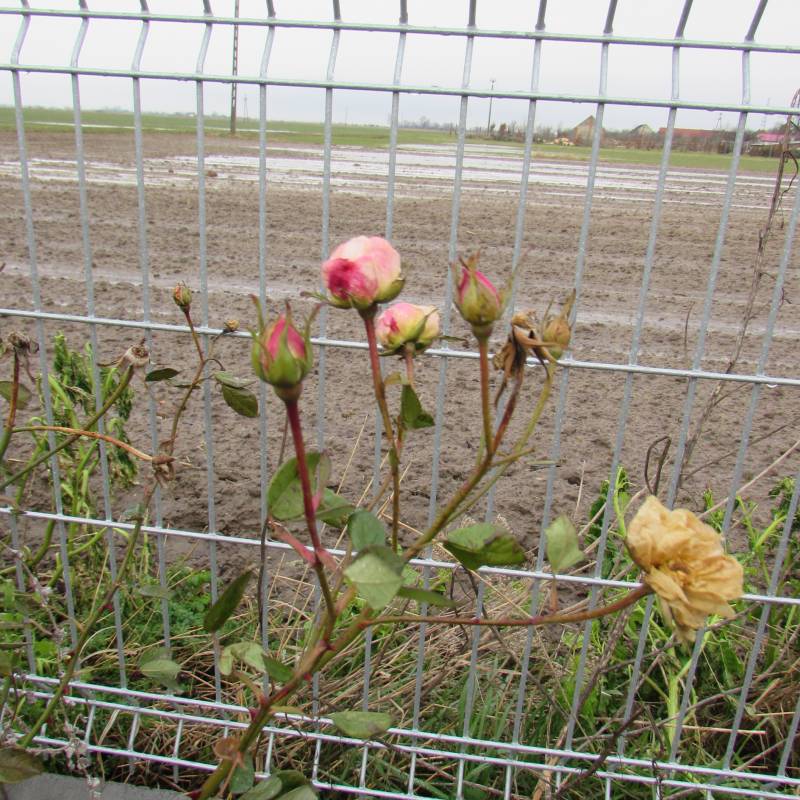 Zapomniana róża pod płotem chyba chcąc mnie zawstydzić - próbuje dalej kwitnąć.