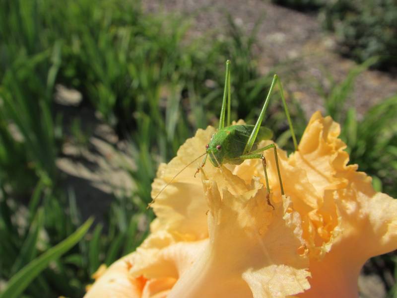 Próbowałam go wypłoszyć, bezskutecznie :bezsil Zajadał irysa z takim apetytem, że bałam się, aby nie pożarł całego kwiatka :mniam