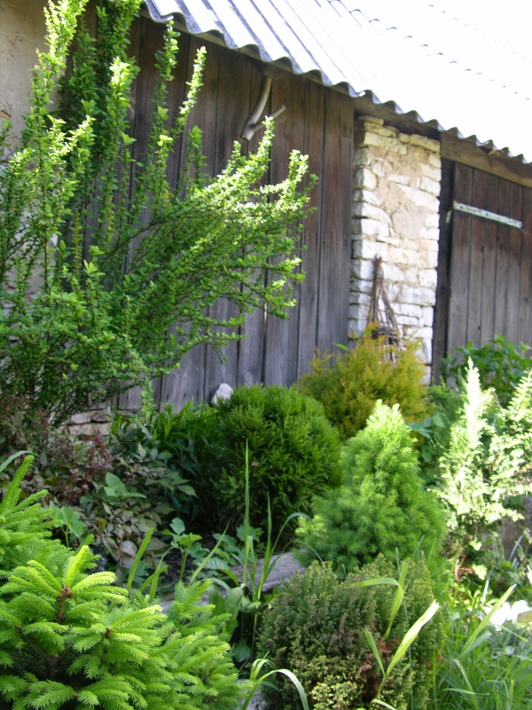 Sosny, magnolie i kamień polny....ogród zwyczajny. |