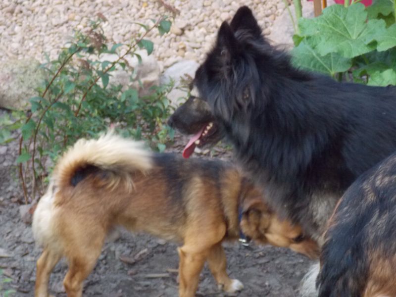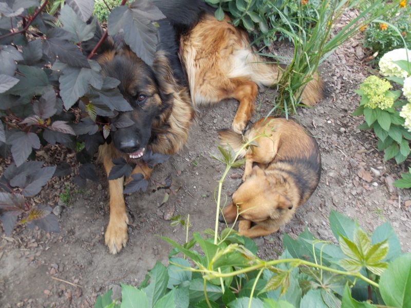 Szybko odkryłam jakimi szkodnikami ogrodowymi są czworonogi w dodatku młodziutkie paromiesięczne a z czasem pojawiły się takie trzy łobuzy :diabelek wielkie i dwa małe, dorównujące swojemu większemu koledze i dwóm koleżankom. To nie jest proste gdy dookoła rosną drzewa i trawa i nic więcej.