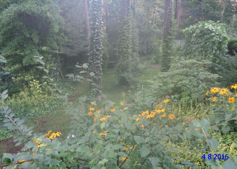 To dobrze, że siedzę tu na Wyspach, bo wściku bym dostała w takiej parówie :mur U nas tez codziennie pada, ale tylko z godzinkę a potem pochmurno, pogodnie. Nocki chłodne 14-17 C, więc pomidorki nie chcą nam dojrzeć. :mur Hanulku, na drugiej fotce Twój ogród wygląda, jak puszcza nad Amazonką .Gęsto i parno. :)