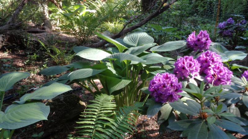 Pierwszy plan to Purpureum Grandiflorum /z tym mam wątpliwości/, dalej MM, po prawej Peter Alan i w głębi po lewej Fastuosum Flore Pleno