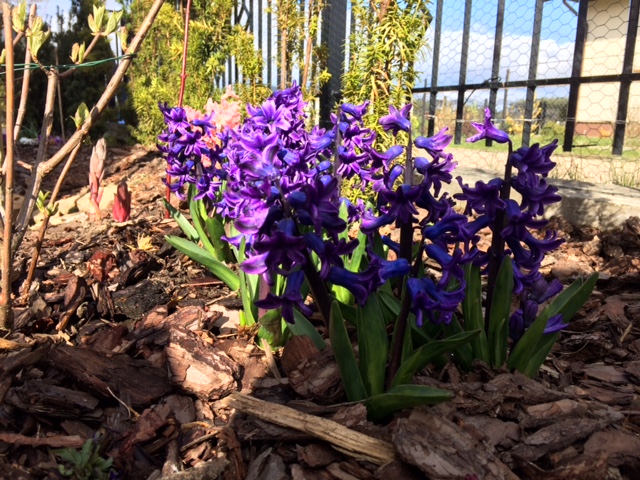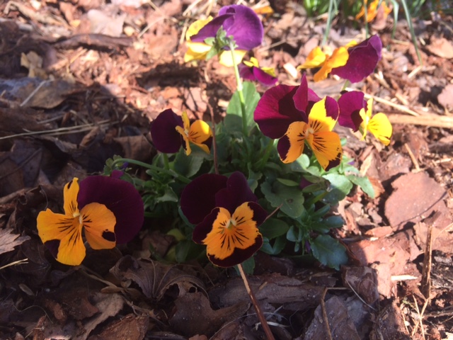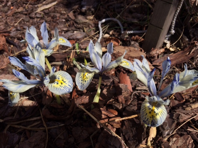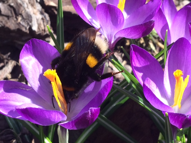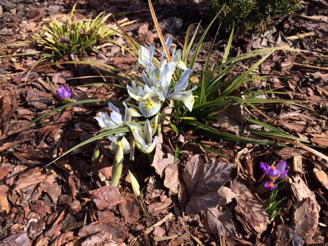 tu na razie skromnie, bo krokuski niskie, część w szczypiorach.. Maluszki dzielnie jednak kwitną tuż po wystawieniu nosów znad kory