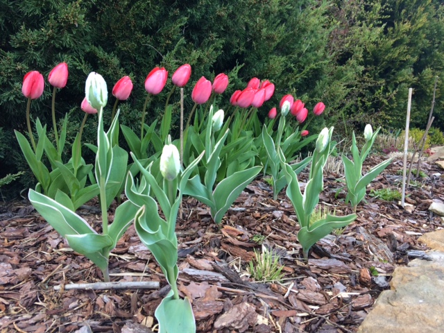 w głębi inne cebule..bo dwa lata temu na tej rabacie były różne rośliny i kępki krokusów też sadziłąm między nimi. Teraz jest niwaki..i krokusy tak troche od czapy się wydają