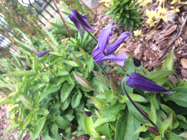 Plącze się tutaj też powojnik.. Mizerny, bo i stanowisko ma chyba mocno nieszczęśliwe..