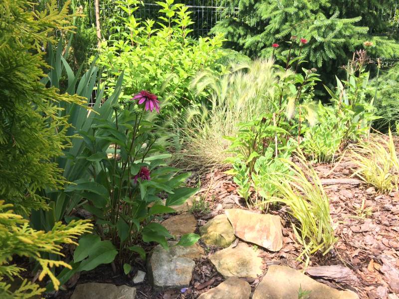 dalej.. monarda w uroczym kolorze- jakoś jej tu miejsce nie służy, bo kępa zmiejsza się zamiast rosnąć