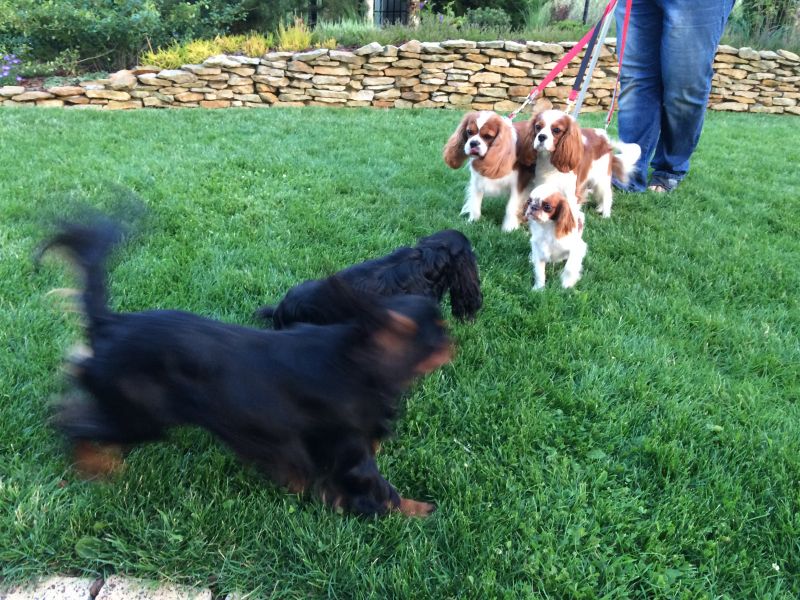 Na ogródku chodzą swobodnie. Maluszek tropi Cygusia, a Łabądek nie odpędza go. W domu musztruje Marviga, jak chce podejść. W którymś momencie usiadłam na krześle, Marviś merdając ogonkiem chciał podejść, a Cyguś, tez merdając, krążył dookoła mnie, jak rekin