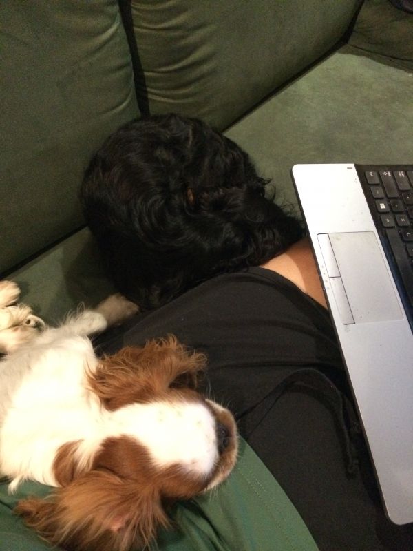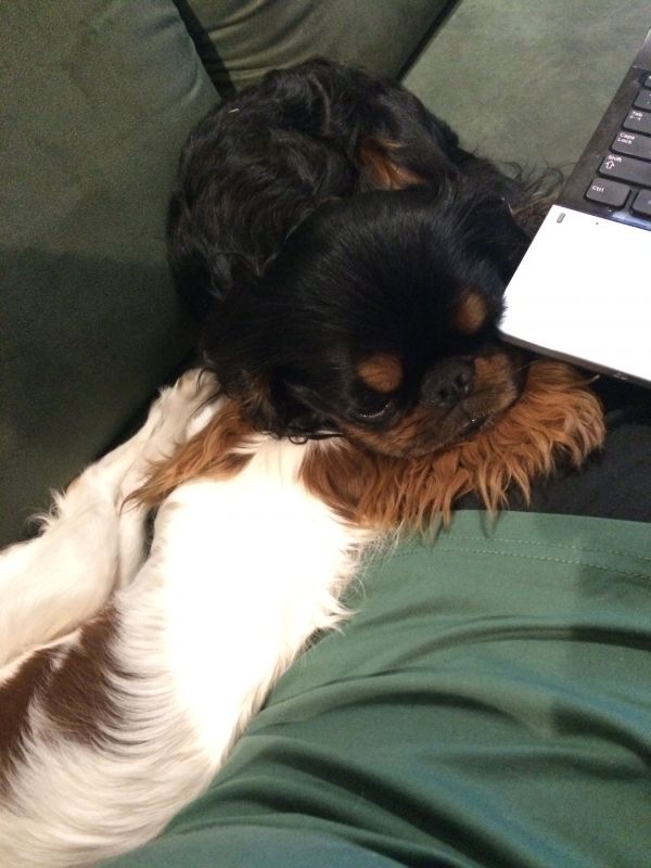 Jestem lekko spięta, ale cieszę sie, że maluch nie jest atakowany cały czas za siedzenie na kanapie. Jest akceptowana sytuacja, że maluch spi na kanapie obok mnie, a Cyguś ułożył się na podłodze przy kanapie.
