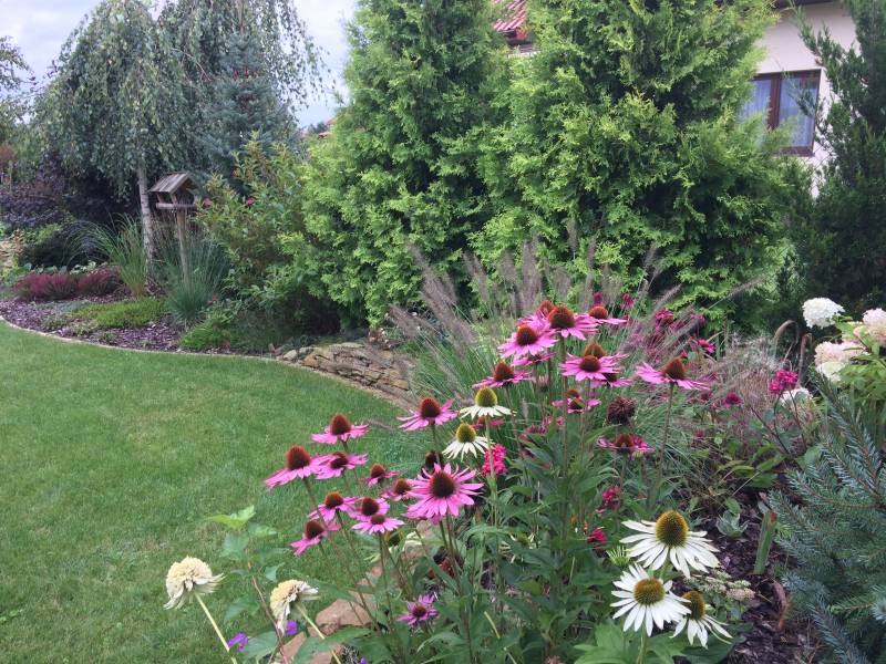 będzie fajnie, jak Limelighty w głębi tarasu, pod oknem, podrosną tak okazale, jak te na skraju.