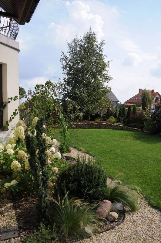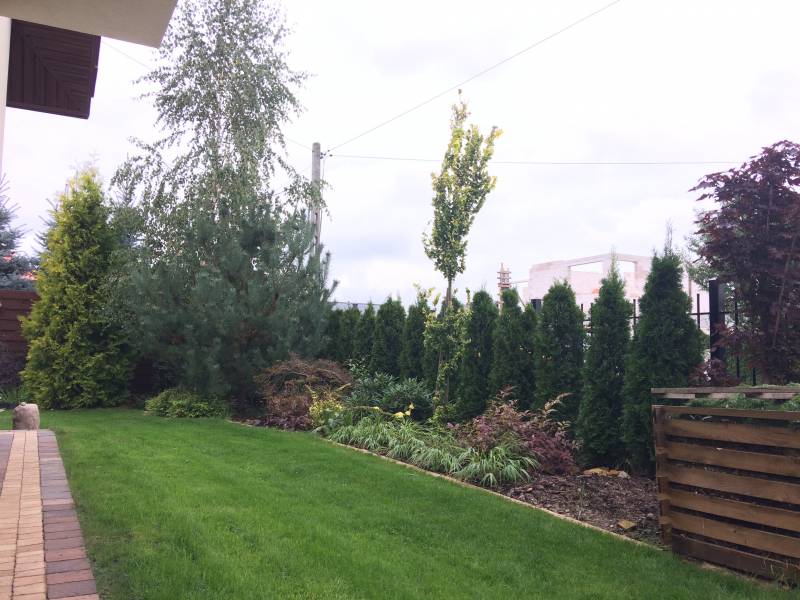 za domem już całkiem nieźle trawa wzeszła, oczywiście widzę sporo dziur, ale to raczej do dopracowania w przyszłym roku. Na razie z przyjemnością patrzę na okolice tyłu domu- miejsca które usilnie omijałam wzrokiem- jest opaska, schludny trawnik, nowa rabata rodkowa.