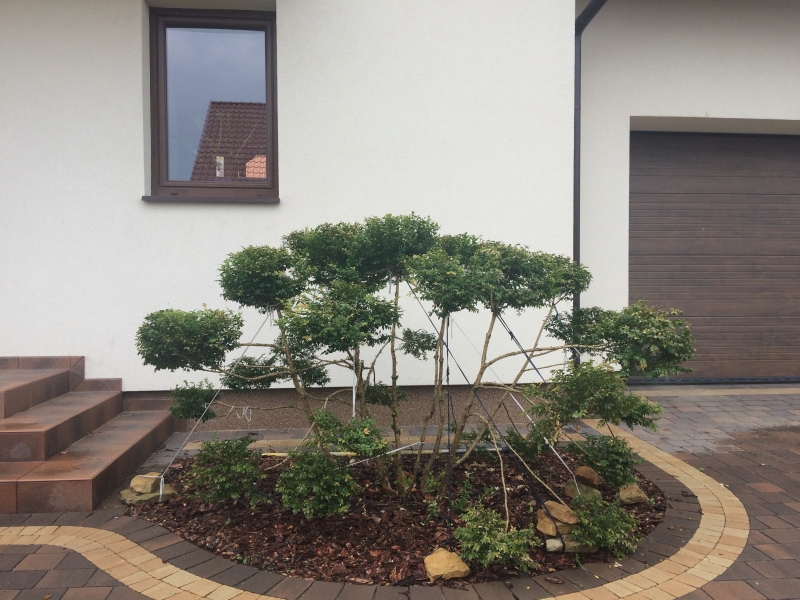 Pień widoczny, to wiśnia Kanzan..a ten stempel leżący- miał być wyrzucony, ale że Cyguś tam wiosną strasznie szalał, to stempel został do ochrony Urszulki, bo zachodziła obawa, że nie uda sie jej urosnąć..i chyba już tam zostanie.