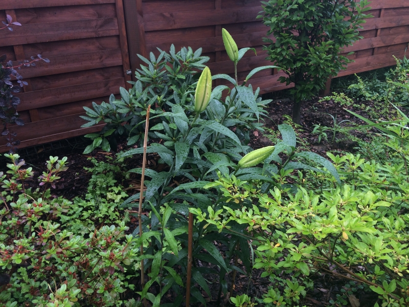 za to otwierają się pachnące orienpety. To niestety NN, tegoroczna pomyłka z Lilypolu- miały tu rosnąc Altari