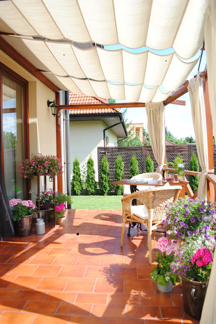 Mój taras jest od płn.-wsch. i cieszę się, że jest tam sporo cienia, mam podobne doświadczenia, jak Poll. Na zbyt słoneczne chwile mam markizę, a zwykle - niebo nad głową, co lubię. O funduszach na swój taras (a raczej o ich braku) wolę nie myśleć.
