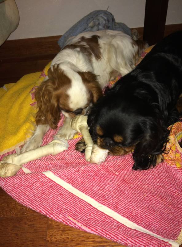 Jak wróciłam po kilku minutach, to powitały mnie wesolutkie psiaki, Cyguś z ogonkiem nastroszonym i rezolutną minką, zero ciastek na podłodze.