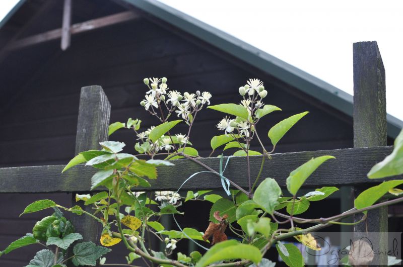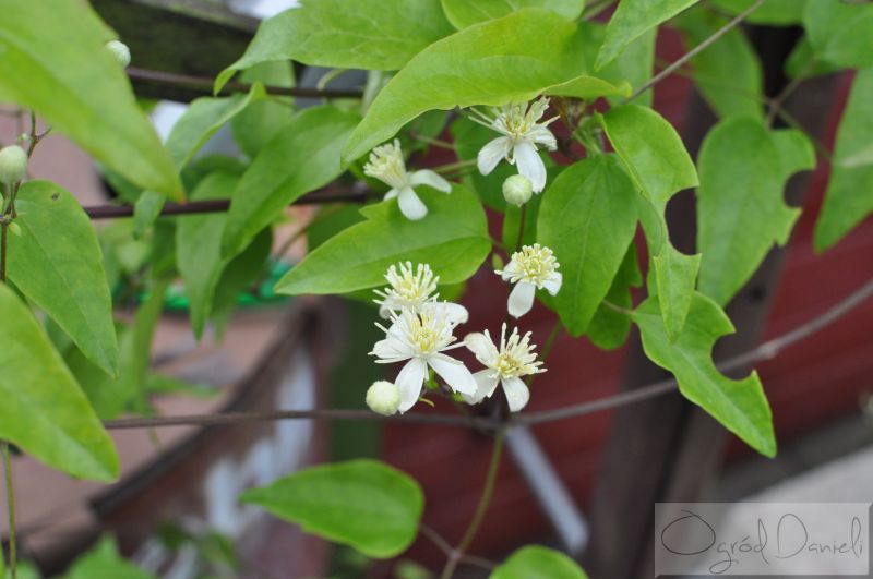 Po kilku latach zakwitł klematis, którego nazwy nie znałam - okazuje się, że to Powojnik pnący - komuś zasmakowały listki