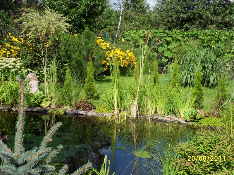 Betina witaj, oczko w ogrodzie to inny świat który ściąga różne zwierzęta od tych najmniejszych po dość duże ptaki-czapla siwa, ważki, żaby... od kilku lat pojawiają się zaskrońce....psy są dobrze wychowane