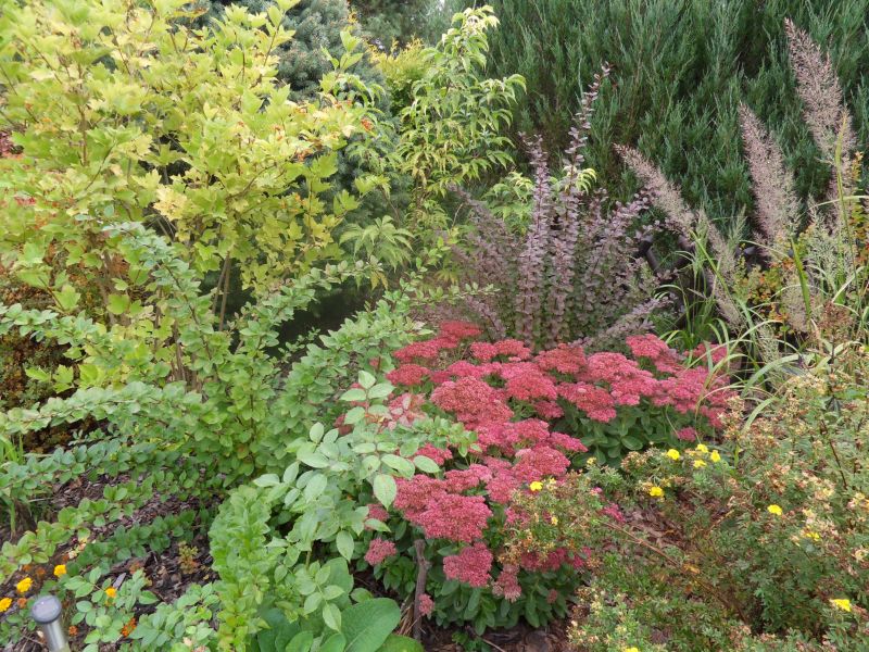 berberysy po wiosennym odmłodzeniu i cięciu na 15 cm. rozluźniły rabatkę