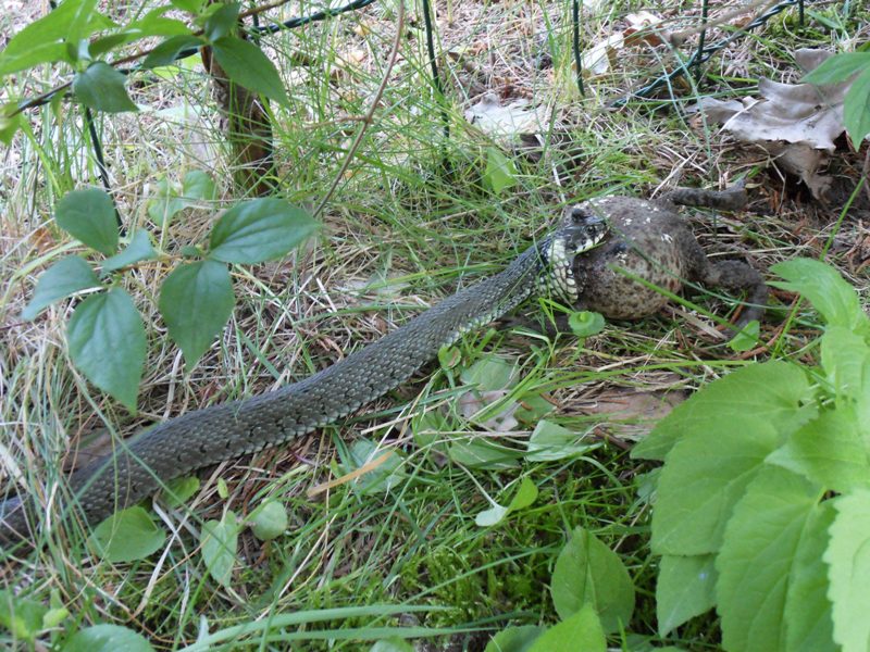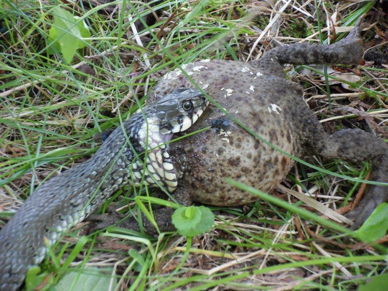 zrobiłem fotę zaskrońcowi który chciał łyknąć ropuszkę która się wzdęła i przy mojej pomocy uratowała sobie życie a zaskroniec został z pustym żołądkiem zwyc