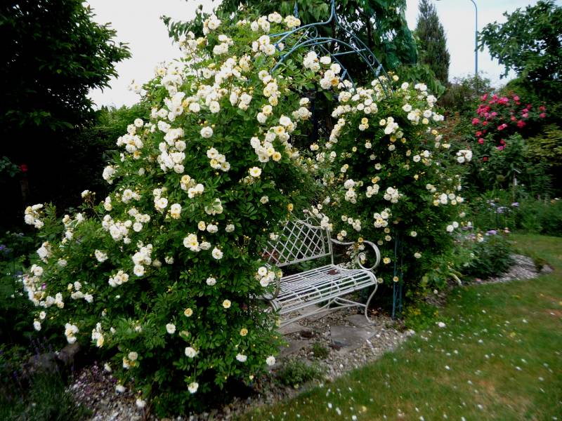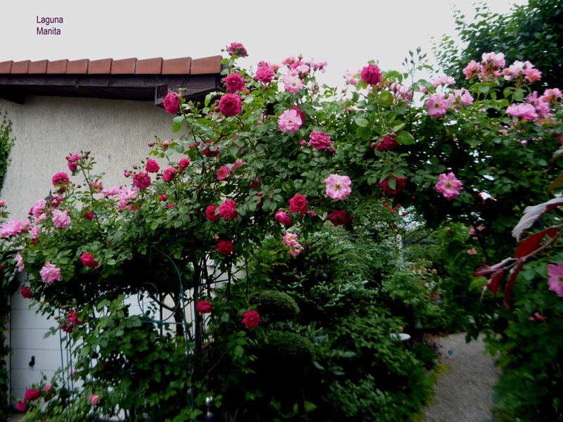 W pionie w ogrodzie rośnie róża Monita i Laguna i chociaż rosną, po dwóch stronach pergoli, to połączyły się razem :jupi