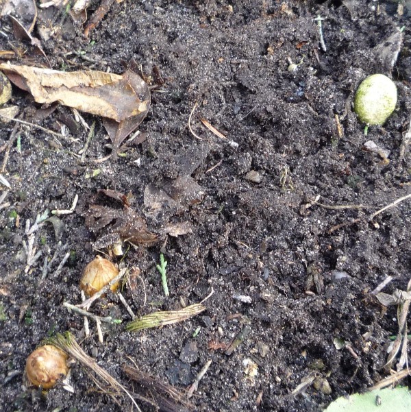 Wystawiają "główki" wszędzie gdzie były sadzone.Śniegu nie ma a mrozik i owszem więc przykryłam je igliwiem.