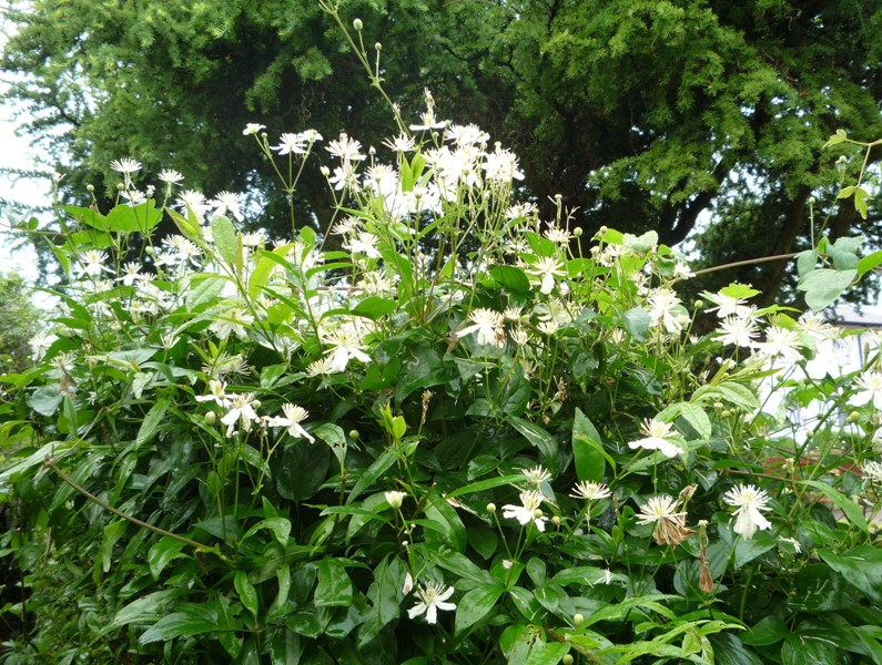 a przy wjeździe zdobi hederę powojnik, po dwóch stronach drogi wjazdowej, który ogromnie się rozsiewa.
