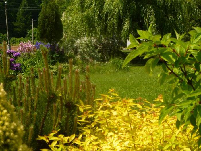 Sosny, magnolie i kamień polny....ogród zwyczajny. |
