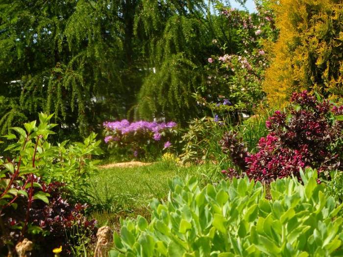 Sosny, magnolie i kamień polny....ogród zwyczajny. |