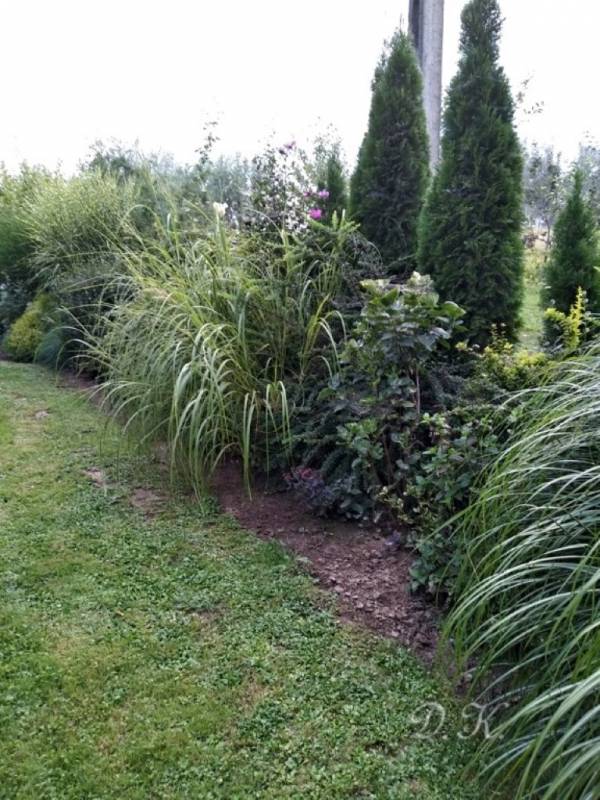 Często w takich momentach wpada mi do głowy pomysł. Tak było i w tamtych latach. Jednym z takich pomysłów były trawy. A konkretnie miskanty i rosplenice. I jak je wkomponować, jak dołożyć do istniejących już miejsc, żeby pasowały razem. I w 2008-2010 kupiłam trawy. I oczywiście posadziłam i zachwycona byłam od samego początku. To był strzał w dziesiątkę. I tak z buntu i myślenia o kwitnących kupiłam trawy.