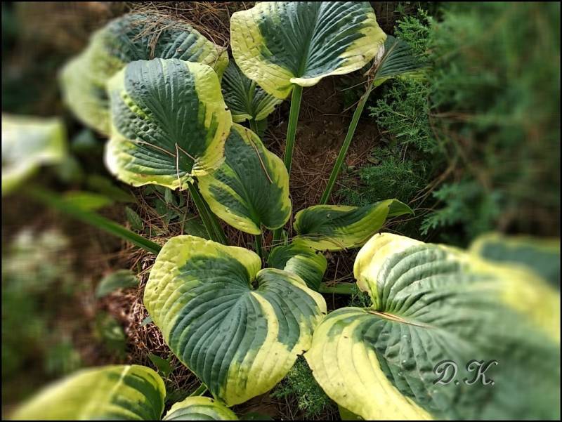 Osobną grupą są hosty. One również są ze mną od wielu lat. Ale jako liście ozdobne. Takie wypełniacze cienistych miejsc, wtedy. I co się okazało? Jak zobaczyłam w jaki sposób wypełniają te przestrzenie pod drzewami, jakie potrafią urosnąć duże w końcu jakie mają kolory, wpadłam w zachwyt. To nie są tylko wypełniacze, to wspaniała roślina, która sama może być piękna, a w grupie nadać charakter miejscu, które ciągle jakieś nijakie było.