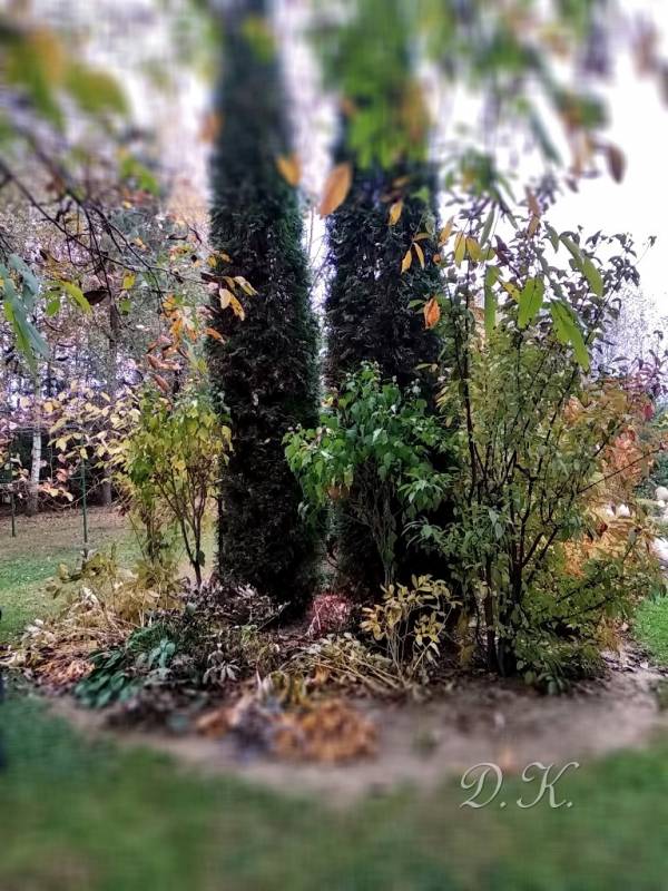 Są jeszcze krzewy i drzewa iglaste. To spora grupa roślin u mnie. Część tworzy ramy ogrodu, część stanowi główną atrakcję na rabacie a część tylko jako wypełniacz. Jednak to również grupa roślin, które były i będą w moim ogrodzie. Bo przychodzi taki moment, że to je widzę pierwsze, że to one zatrzymują oko, kiedy patrzę przez okno. Są niedocenione, nie mam dla nich uczuć, jak dla traw czy host, czy nawet róż. Ale są taką pewnością dla mnie. Taką ostoją. Takim twardym elementem, bez którego ogrodu by nie było. Taką opoką.