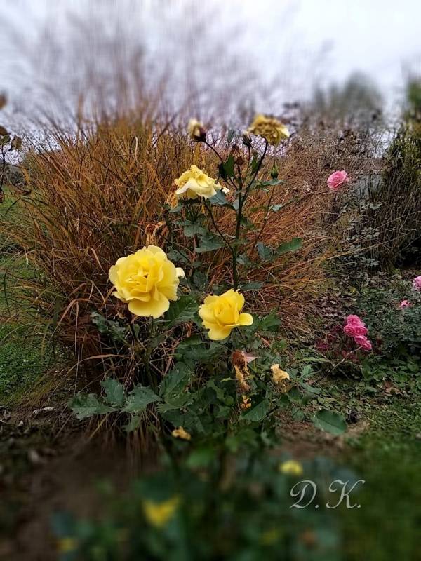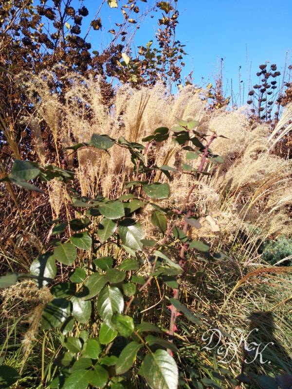 I kupuję je do tej pory. Dwa lata temu, przypomniał mi się ten mój pomysł, żeby do ogrodu wprowadzić więcej kwiatów. I zaczęłam kupować róże. I sadzę je obok traw. To stary pomysł u mnie, że głównym składnikiem rabaty jest trawa a obok jakieś kwitnące. Bo wcześniej były dalie, jeszcze wcześniej pacioreczniki, a jeszcze wcześniej jeżówki. Oprócz dalii, reszta gdzieś tam rośnie. Pewnie i dokupię jeszcze.