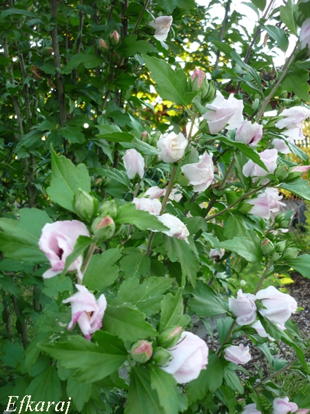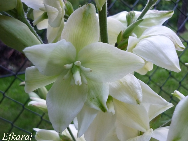 Pod lasem mam wsadzone juki. Zastanawiam się nad przesadzeniem ich bardziej do słońca, bo mają zupełnie inne kwiaty, niż te, które rosną mi w słońcu. Te słoneczne, mają dzwoneczkowate kwiatki, te w cieniu są szeroko otwarte, o mięsistych płatkach. Wyglądają jak z porcelany