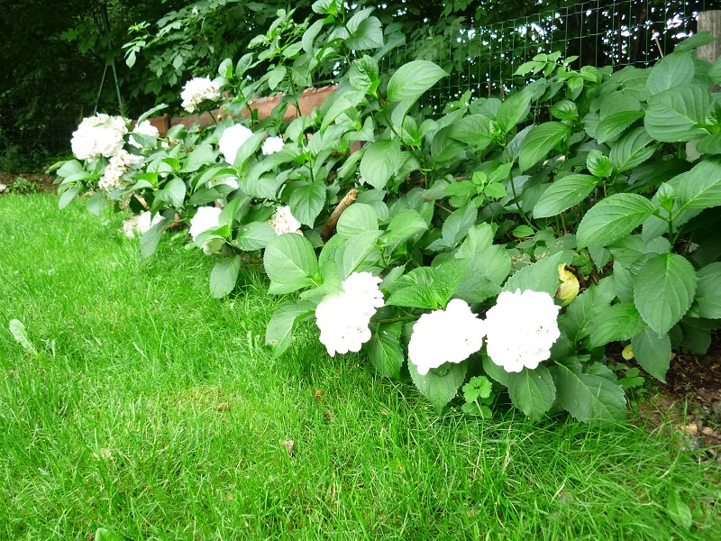 Miejsce pod lasem powoli zapełniało się hostami i choć nie mogę powiedzieć o sobie, że jestem maniakiem hostowym, ale na pewno bardzo je lubię. Dla hortensji tez trochę miejsca się znalazło.