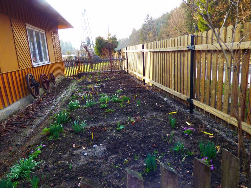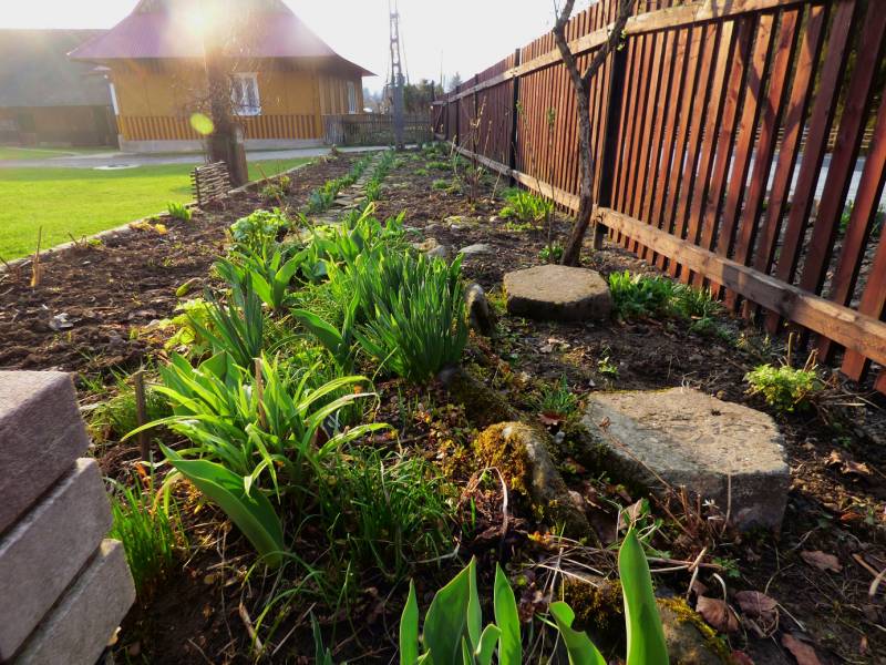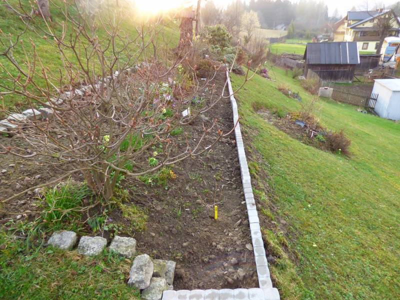 Na dzień dzisiejszy dolna połowa rabaty jest wyścielona korą,górną mamy tak samo wyłożyć palisada z betonu,włożyć tkaninę i nasypać kory,bo pielenie na skarpie mnie dobija.