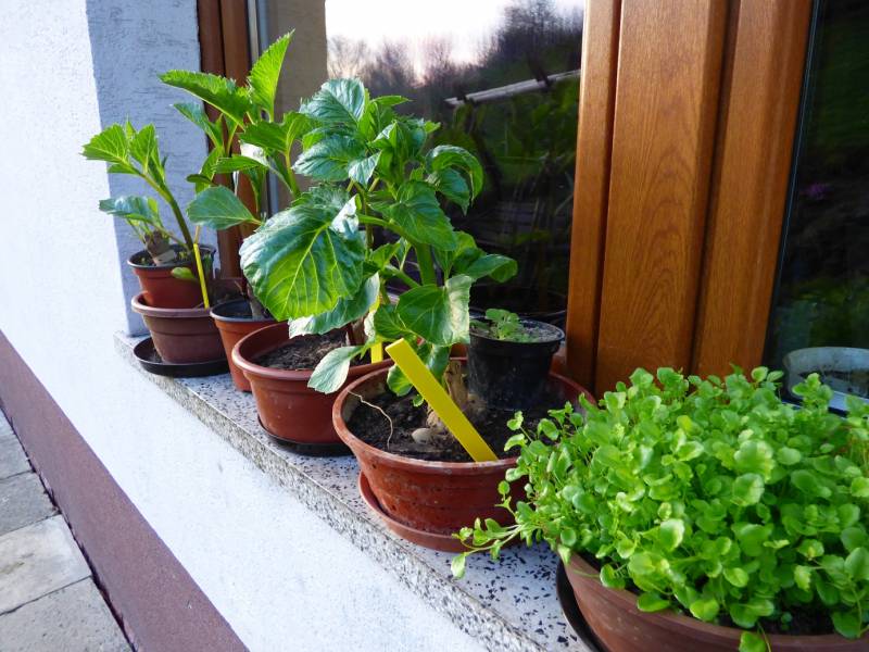 Dalie bezpiecznie rosna w doniczkach,juz wyniesione na dwór.