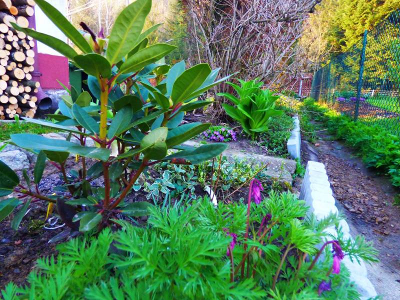 Za domem,też zmieniam rabatę były skalniaki teraz nasadziłam kilka rododendronów,3 kupiłam,3 przeniosę z innych rabat,wsadziłam liliowce,ziemia jest twarda jak beton,skoszoną trawę będe dawać aby sie więcej ziemi zrobiło.