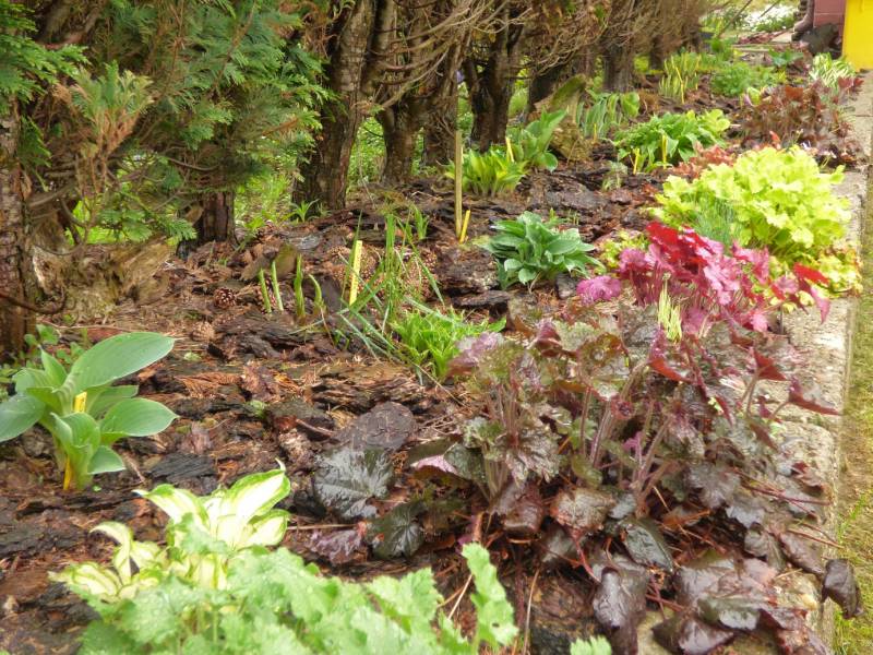 Miłko żebyś widziała minę sąsiadów,jak rabata była robiona think: tylko to miejsce jest ubogie w ziemię same kamienie,od 15 lat był tam skalniak,na wiosne cudnie kwitnął,a potem pustka,do tego drewna na ścianie sa co roku układane na wiosne,bo dobrze schną,i strasznie rabatę sie deptało,więc założyłam folię i wysypałam kora,dałam rząd kostek brukowych.