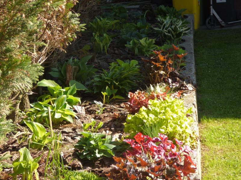 Tak prezentuje się nowa rabata ,szpecą podpory podtrzymujące stos drewna,jednak do jesieni drewna znikną.
