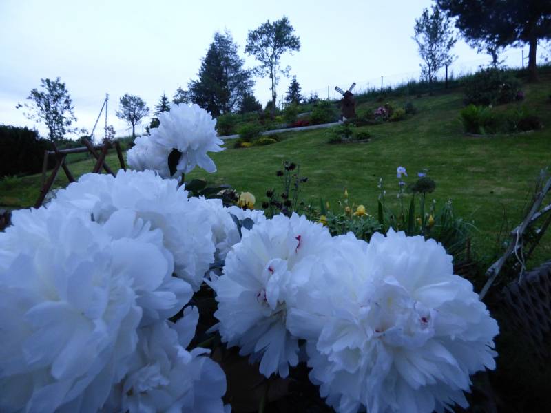 Kilka dali zakwitło,ale zrobiło się bardzo sucho do tego wiatr niemiłosierny,dzieki Bogu nawałnice nas omineły,trochę popadało.