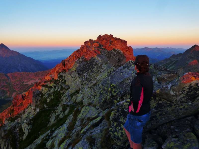 od 4 powoli widzieliśmy budzące się świt,synowie odpoczywali pod szczytem Rysów spotkaliśmy dwóch turystów,myślałam ze idą na Rysy.Był to Starszy Pan,z synem którzy nie mogli zejśc ze szczytu od wieczora czyli spędzili w zimnie całą noc,na szczęście turyści którzy szli przed nami dali im pić gorącej Herbaty ,czekoladę kanapki i zadzwonili po pomoc.ja tez im dałam dwa batony,w drodze powrotnej ze szczytu uszli trochę metrów dotarła w miarę pomoc ratownik wezwał śmigłowiec bo trudno w to uwierzyć chłopak dostał ataku padaczki