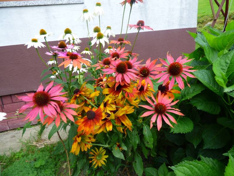 Pamiętam jak 10 lat temu,w tedy jeszcze biegałam dla zdrowia,teraz chodzę po górach,u znajomej sąsiadki wypatrzyłam purpurowa w ogrodzie,tak mi ten kwiat wpadł w serducho że zerwałam jeden kwiatek,i zebrane nasiona wsiałam do doniczki,jaka radość była gdy 6 nasionek wypuściło łodyżki,dwa lata czekałam na kwiat,a gdy się rozkwitł,to byłam szczęśliwa jak mało kto.Teraz jeżówek jest wszędzie pod dostatkiem,więc kupuję na naszych wiejskich jarmarkach.