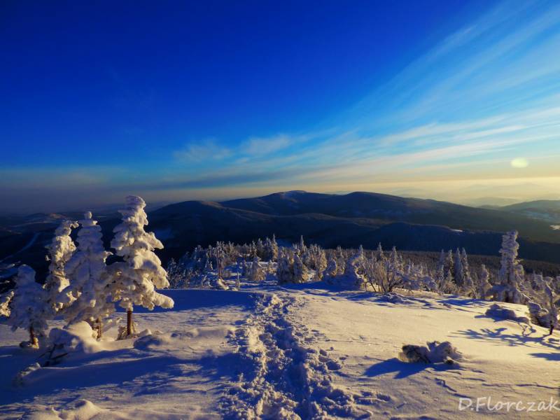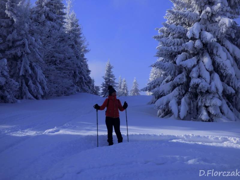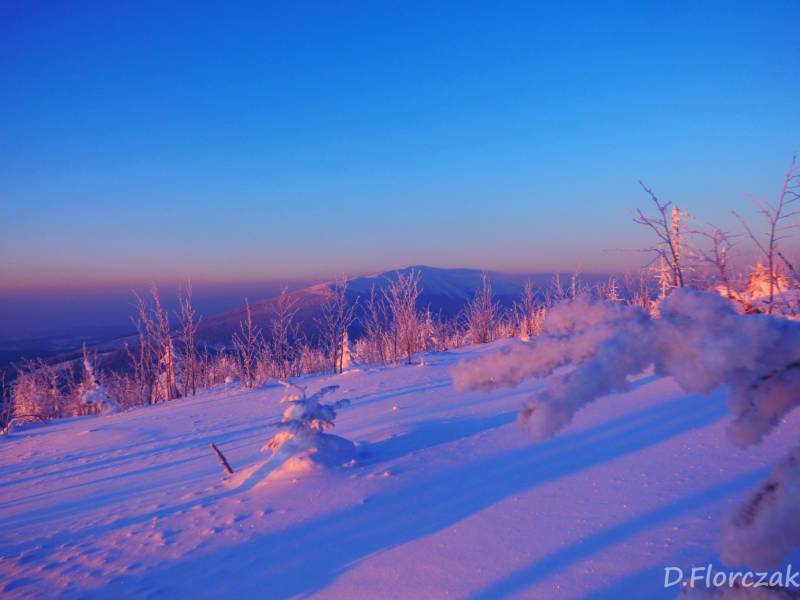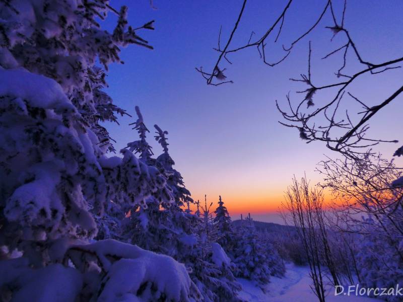 we czwartek rano pobudka przed 3 niebie wyjaśnione mróz -12 st i poszłam sprawdzić swoja kondycję przed EDK .O 3 wyruszyliśmy na szlak w dwóch samochodach kilkoro turystów się przebierało do wyprawy na Babią ,my wolnym ale stabilnym krokiem,ruszyliśmy na szlak,bylo zimno ale nie tak bardzo jak ostatnio.Trzech turystów minęlo nas szybkim krokiem,zastanawiałam się po co tak pędzą,natomiast małżeństwo młodsze od nas też nas wyprzedziło w takim tępie że pomyślałam hola,hola