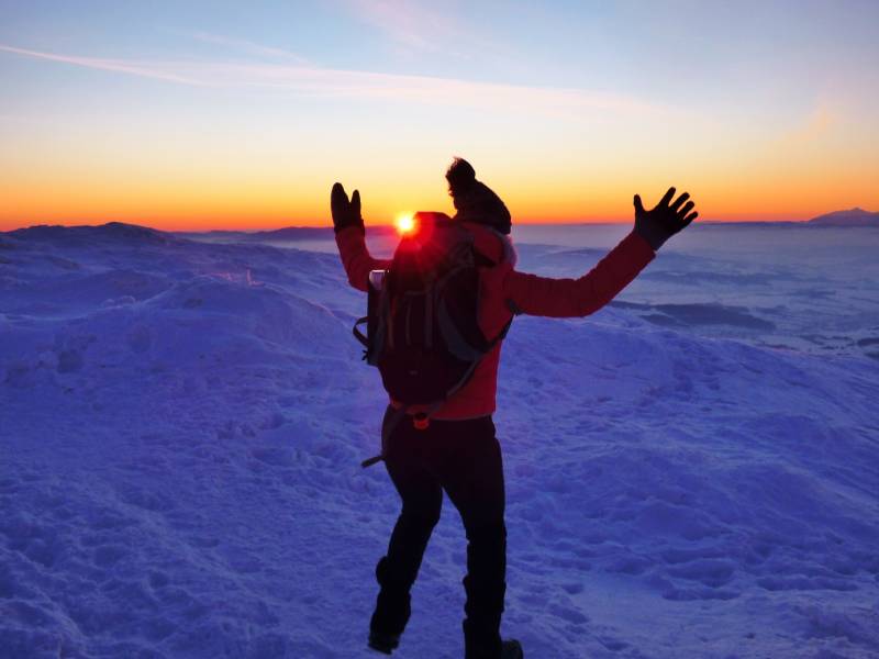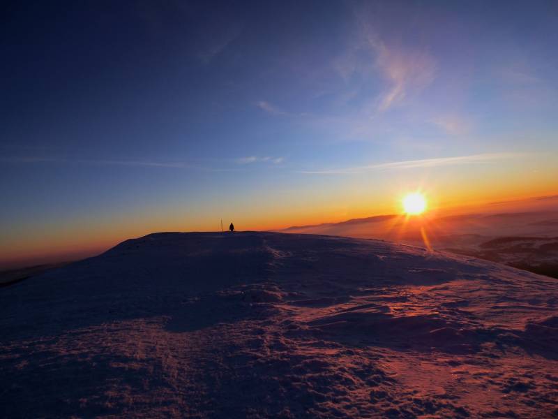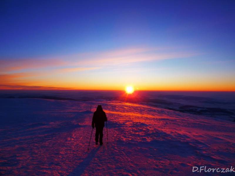 Od Kępy dzień zaczął się budzić i jest to najpiękniejsze zjawisko na ziemi,przejrzystość powietrza niesamowita przed szczytem zaczęło wiać Tatry na wyciągnięcie reki my podziwiamy pierwsze wynurzenie słońca a wszyscy mega turysci tak zmarzli na szczycie ze zamiast podziwiać to,po co przyszli to zajęci byli rozgrzewka