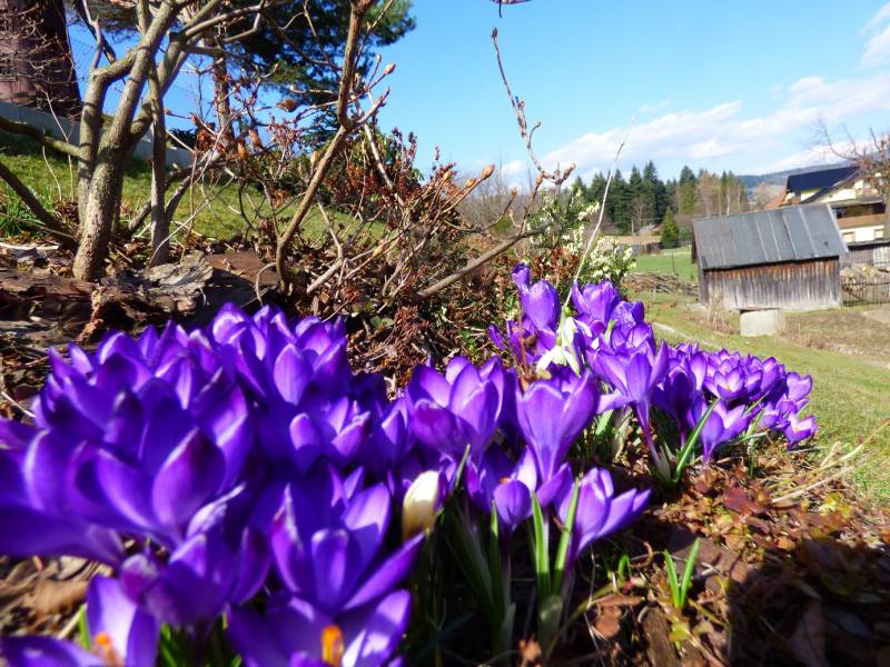zimowo zrobiło się w górach,rok temu o tej porze miałam wszystkie krokusy rozkwitnięte a w tym roku zaledwie dwa kwitną,śniegu troszkę jeszcze i leży i prószy,szpaków ciągle brak