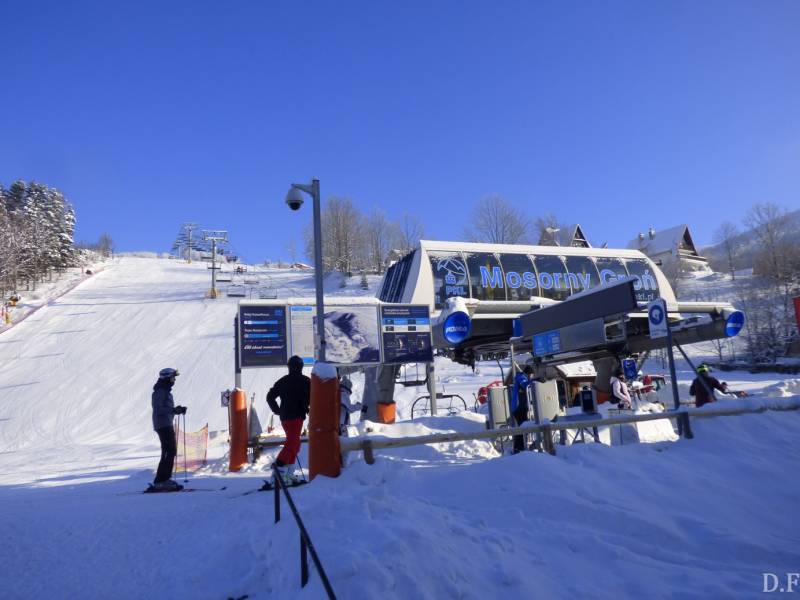 Wyciągiem wyjechałam na Mosorny Groń,niebo błękitne i tylko :slonko