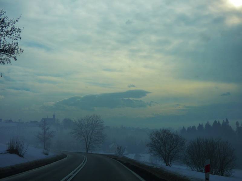 Ja uwielbiam zimę i to jest plus,zawsze znajdę sobie rozrywkę,np. Wczoraj jak już drogowcy wirnikiem odśnieżyli Krowiarki z duszą na ramieniu,pojechałam na 5 na parking na Krowiarkach,aby sprubować podziwiać pierwszy wschód słońca w tym roku clap Modliłam się aby,moi bliscy zmarli pomogli mi dotrzeć do celu.Już na górnym parkingu,byli ze mną czekało wolne miejsce dla mnie hu_rra więc wycofałam starannie aby jeszcze ktoś chętny skorzystał,Drugi parking był w połowie odśnieżony ale po co mam płacić jak mogę w innym miejscu stać za darmo.
