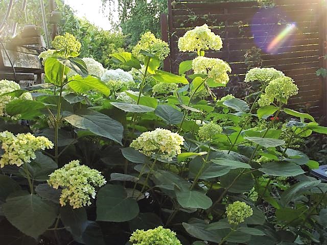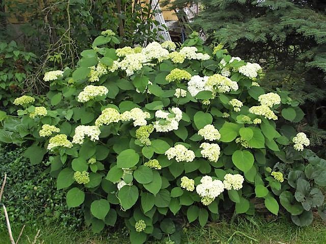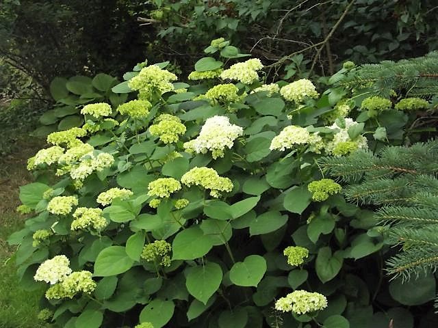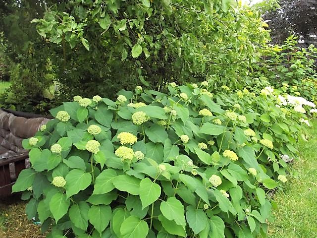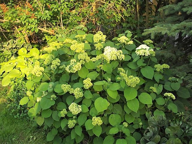 Hortensje drzewiaste Grandiflora, Annabell jeszcze jest zielona.
